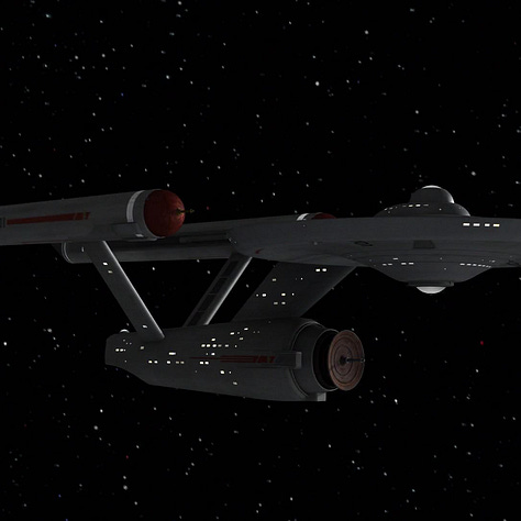 However, applying the name Daedalus in this case may prove incorrect. The ship shares design features with the Constitution-class U.S.S. Enterprise in TOS: The Cage; pay particular attention to the spiked, red warp nacelle caps. With the designs sharing technology, they can be dated to the same era, circa 2254. Thus far, dating the design seems irrelevant. However, unlike the names of other background ships, Daedalus was mentioned once on screen…